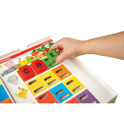 - Contents: 15-word cards, 26 letter tiles, 5 extra vowels and 1 storage tray